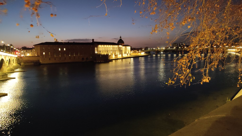 A l’issue de cette pause-minute, deux choix s’offrent à moi. Et je me trompe, sinon l’histoire manque de saveur. Alors que j’aurais pu traverser les villes ou plutôt, villages, de Fronton, Orgueil, L’Union et photographier les panneaux d’entrée pour en faire des memes ou jeux de mots, j’emprunte la RN 10, aussi nommée Route de Paris. Quelle erreur. Cette heure est la plus longue et ennuyeuse du parcours. Je vais de zone industrielle en zone industrielle, roule à 70 km/h, et me frotte trop rapidement à une dense circulation. On apprend tous les jours, aujourd’hui n’y déroge pas. Mais je quitte rapidement mon bougonnement (inaudible pour les autres et moi-même) et retrouve le sourire en entrant dans Toulouse. J’avais découvert la ville rose en octobre, en plein été indien et retrouve une ville chaleureuse où je sais pouvoir me poser pour trois nuits. Finalement, j’en ajouterai une quatrième. Mais d’abord, place à une journée « off ». En réalité, deux.