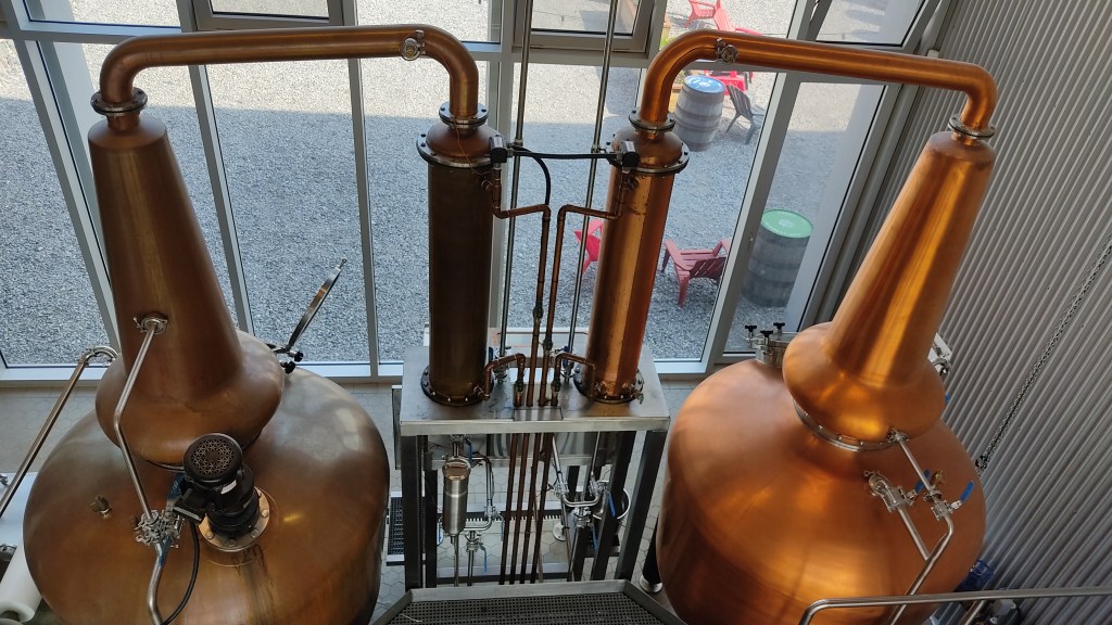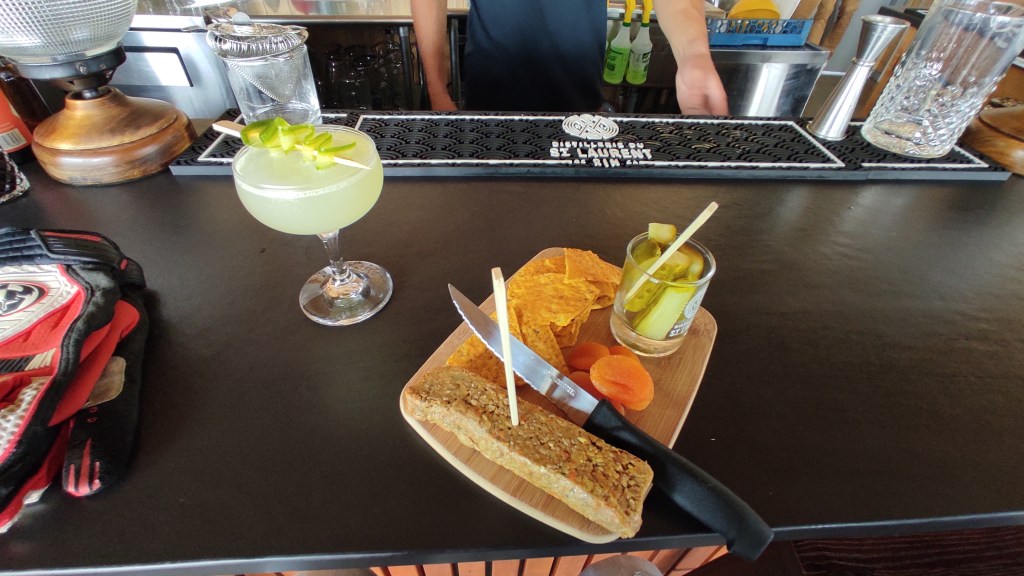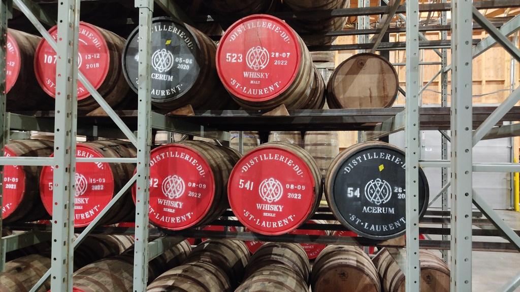 La Distillerie St. Laurent n’est pas qu’un simple établissement de fabrication d’alcools, que l’on visite pour mieux comprendre les processus de distillation des spiritueux et le vieillissement si particulier du whisky. La distillerie est aussi un lieu où l’on vient déguster les cocktails imaginés par Vincent, mixologue en chef, servis par Riwan, derrière le comptoir depuis un an, et accompagnés de gourmandises locales comme la tomme de Kamouraska au poivre, issue de la Fromagerie du mouton blanc ; la mousse d’anguille du restaurant l’Arlequin ou encore le végépâté de l’épicerie L’Ardoise.