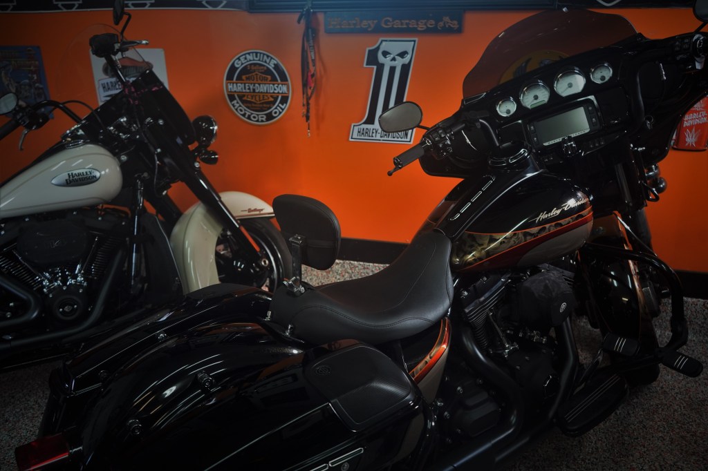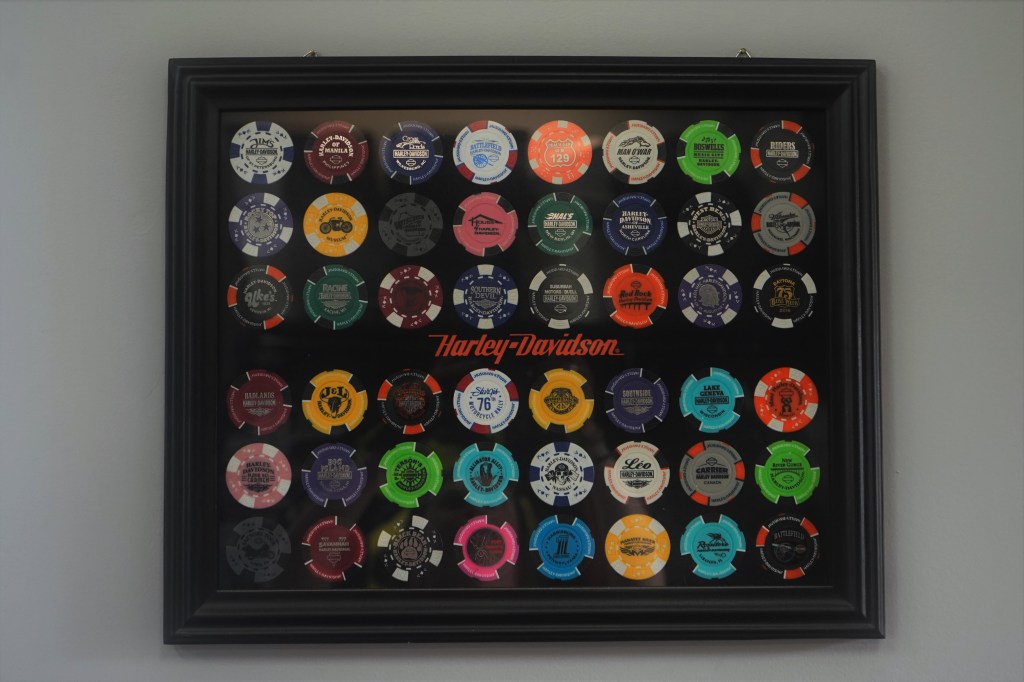 From decorating their garage to furnishing their basement, not forgetting their clothes and equipment, Patrick and Robyn live their lives to the rhythm of HD rides and rallies, which they sometimes organize. But also motorcycle adventures, let’s not forget it!