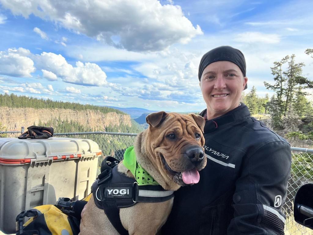 Since the start of this trip across Canada, I’ve seen a lot of motorcyclists with pets: dogs, cats, horses, ducks and so on. But when it comes to motorcyclists who travel with them, and in a Ural with sidecar, there’s only one: Lyna. In April 2022, she took a year’s sabbatical to cross Canada with Monster Yogi Bear, a Shar Pei she had adopted two years earlier. An abused and malnourished puppy who, today, rushes into her sidecar at the mere mention of a motorcycle ride.