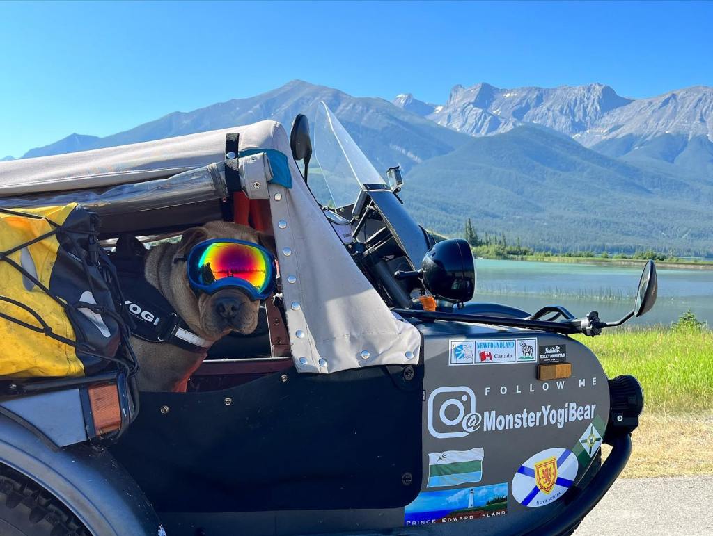 Depuis le début de cette traversée du Canada, j’en ai vu des motocyclistes qui possédaient des animaux : chiens, chats, chevaux, canards etc. Mais des motocyclistes qui voyagent avec, et en Ural avec side-car, il n’y en a qu’une seule : Lyna. En Avril 2022, elle a pris un congé sabbatique d’un an pour traverser le Canada avec Monster Yogi Bear, un Shar Pei qu’elle avait adopté deux ans plus tôt. Un Shar Pei maltraité et sous-alimenté qui, aujourd’hui, se précipite dans son side-car à la simple mention d’une balade en moto.