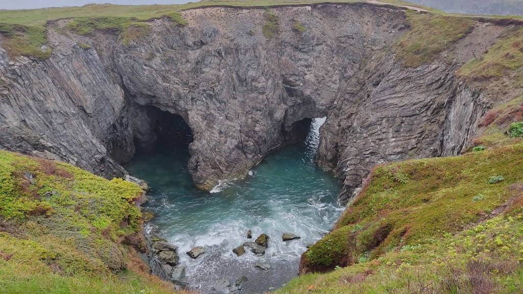 To continue our discovery of the island through the prism of European colonization, let’s head East. Our next stop is Bonavista. The village was made famous by Jean Cabot. Originally named Giovanni Caboto, the Venetian explorer even claimed responsibility for the discovery of North America. And that’s just the beginning. The year was 1497. Legend has it that he exclaimed « Buon vista ! » as soon as he disembarked from his ship, thus giving his name to the place, Bonavista. The village, now home to some 3,500 inhabitants, still relies on fishing and tourism. In addition to the statue of the navigator and the life-size replica of his ship, Bonavista is a must for wildlife-watching, as it is home to one of the country’s largest puffin colonies. No need for an excursion; just a snack, binoculars (or just your eyes) and a little patience, and you’ll have plenty of time to observe these amazing birds. In early summer, you can also follow the descent of the icebergs along the coast and enjoy the ballet of the many whales, whose migration continues over several weeks. Less than two kilometers from the Bonavista lighthouse, you’ll also come across another example of what nature has to offer: the Dungeon Provincial Park. Carved out by the waters, an arch with two bridges forms a cavity where the water rushes in and out. A phenomenon that tourists and locals alike are never tired of observing. The Bonavista Geopark has even been awarded the precious UNESCO Geopark label in 2020.