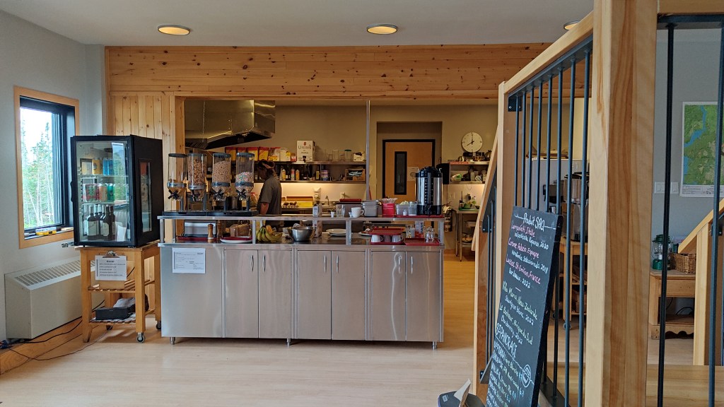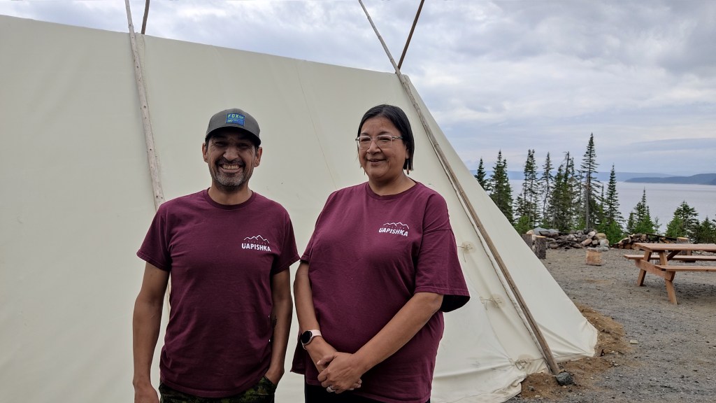 120 kilomètres plus loin, dont 100 kilomètres sur gravel poussiéreux par temps sec, vous pourrez vous arrêter à la station Uapshika. L’endroit est atypique. Au bord du lac Manicouagan, au milieu des Monts Groulx, il fait penser à la fois à un immense gîte, sur deux étages, et à un centre de colonie de vacances pour adultes. La moitié du personnel est innue et les touristes de passage se mélangent aux scientifiques qui y vivent à l’année. En effet, la station, cogérée par le Conseil des Innus de Pessamit et la Réserve Mondiale de la biosphère de Manicouagan-Uapshika, sert de camp de base pour celles et ceux venus étudier ce territoire classé au patrimoine de l’UNESCO. La station Uapshika est multiculturelle, avec des infrastructures à la pointe, et met l’accent sur l’éco-tourisme. Accessible été comme hiver, elle promet une expérience inédite au cœur des Monts Groulx. Et si vous êtes fin gourmet, vous apprécierez les plats préparés par le Chef !