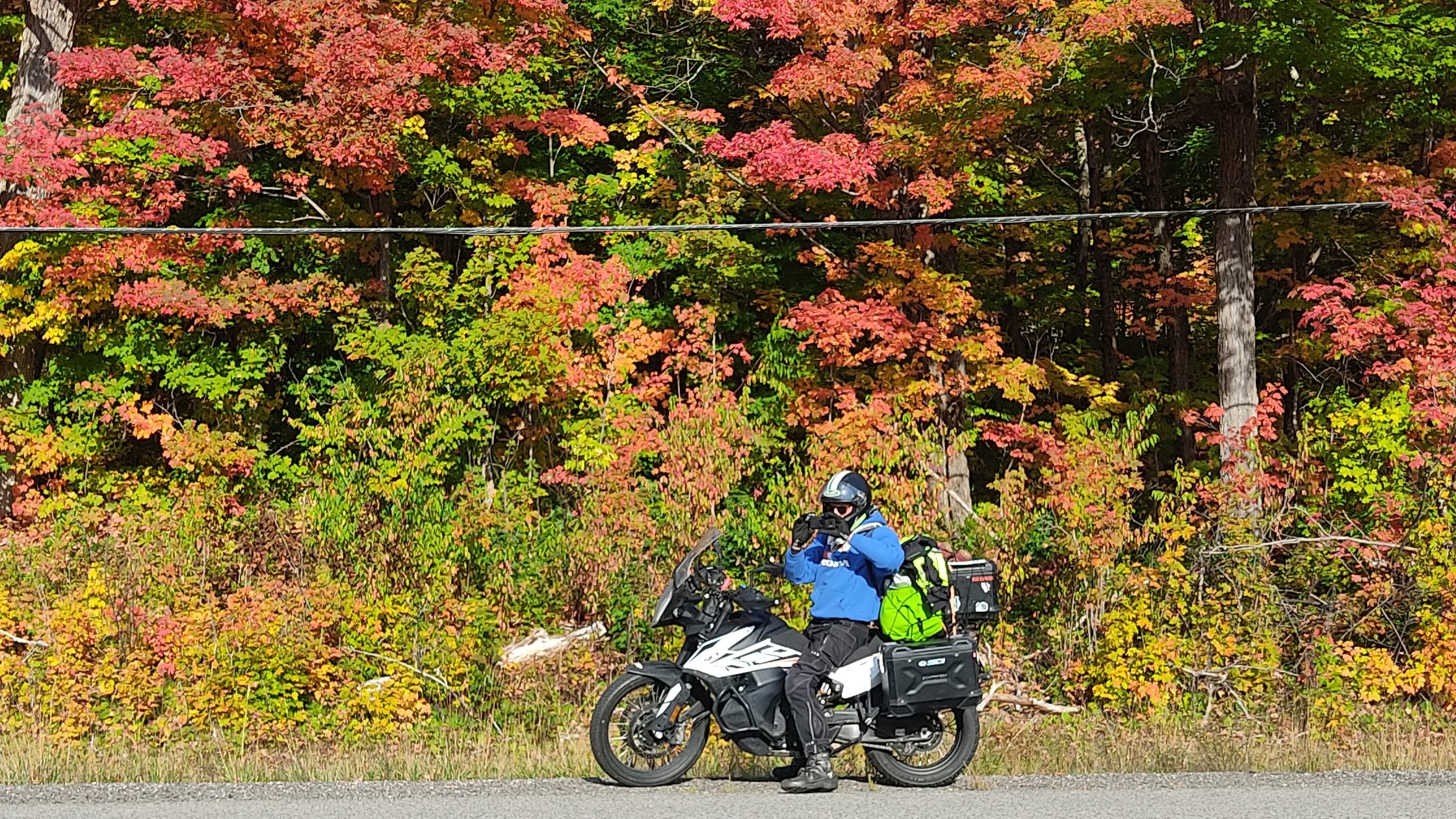 If you don’t find him creating new tracks on his friend Kyle’s private property or cruising the Maritime province on his Kawasaki KLR 650, you’re more likely to find Larry in his garage, repairing equipment or assembling parts to improve the performance of his two-wheelers. Performance, or safety, like this headlight that makes his Husqvarna 701 more visible, especially in gloomy weather. Let’s leave aside the subject of weather in Nova Scotia. As I wrote before, and while I was still somewhere in Newfoundland, he began a series of searches to assess the possible causes of my injection error code. While we were unable to find an explanation, despite all the tests we carried out – including removing the full tank – this above all enabled me to observe a character trait that many motorcyclists have in common: his willingness to share his knowledge, whether of riding or repairs, and his desire to learn more and more, whether on the road or in the workshop.