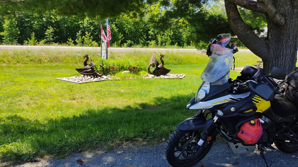 Once you’ve filled your tank, and perhaps your water bottles and hydration packs, you can set off again with peace of mind to Aubrey Falls. Admittedly less impressive than Niagara Falls, they’re sure to refresh you, if you’re willing to take your bike down a loose gravel path. Well, when you’re on an adventure…